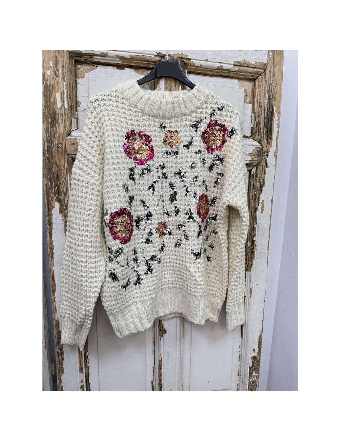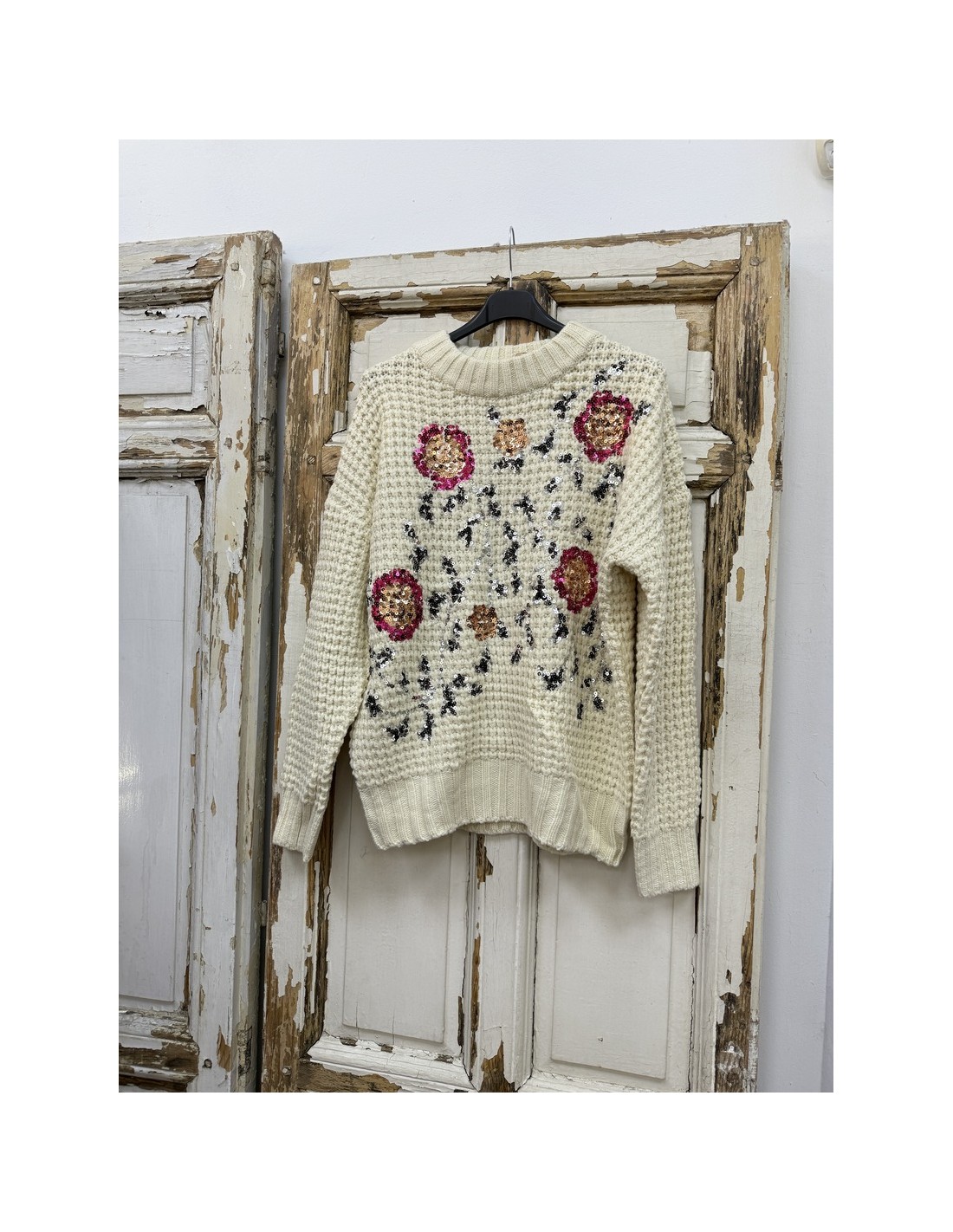 jersey beige con flores talla única
